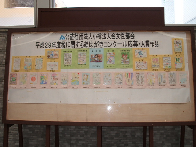 本日は、小樽法人会 女性部会 平成29年度 税に関する絵はがきコンクールの作品をご紹介いたします。 小樽市内の小学校4・5・6年生からの応募作品を展示しています。 どの作品もはがきサイズですが、力作ですね。そして、とてもきれいな色遣いです。 実際の作品を近くでご覧ください。 『優秀賞』などの作品は、小樽法人会のホームページでもご覧になれます。 2017年11月22日 事務局からのお知らせ « 前の投稿 次の投稿 »