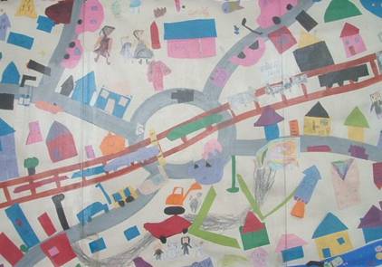 本日紹介するのは、『桂岡幼稚園』の作品です。 作品は、駅やお店などがある地図です。 多分、園児たちが考える夢の街の地図と思います。 じっくり見てると本当に楽しいです。 ぜひ、見に来てくださいね。 2026年3月3日 事務局からのお知らせ « 前の投稿