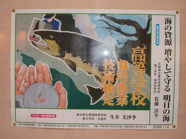 今日の紹介は、『 水産高校 』です。 どれもすごくうまいです!! ポスターは、絵も標語も生徒さん達の作品です。 プロ顔負けですね。 魚の絵も、モノクロ写真かと思うほどです。 近くでじっくり見ていただきたいです。 2017年10月12日 事務局からのお知らせ « 前の投稿 次の投稿 »